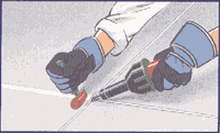 Растворитель (ТГФ) переливают из оригинальной банки в контейнер емкостью примерно 250 мл. Для нанесения используют плоские кисточки длиной ~ 5 см, шириной ~ 4 см и толщиной ~ 0,5 см или емкости из полиэтилена (250 мл) с регулируемой подачей струи.